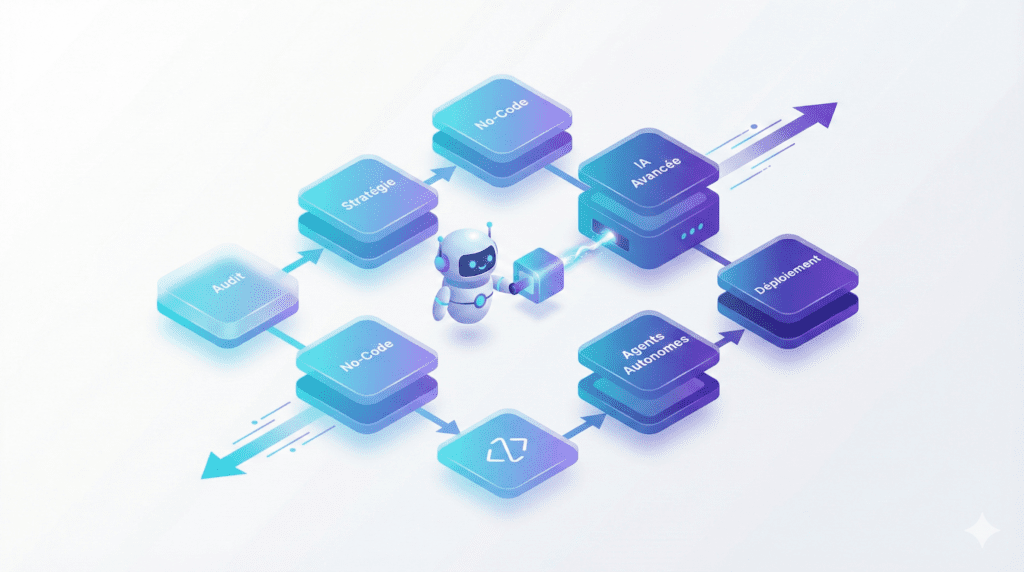 Concrètement, on intervient sur trois niveaux d’automatisation selon votre maturité digitale.
